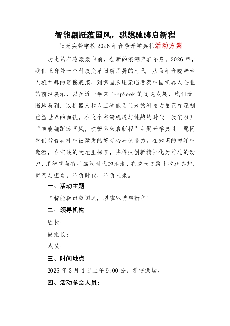 2026年春季开学典礼活动方案:智能翩跹蕴国风,骐骥驰骋启新程