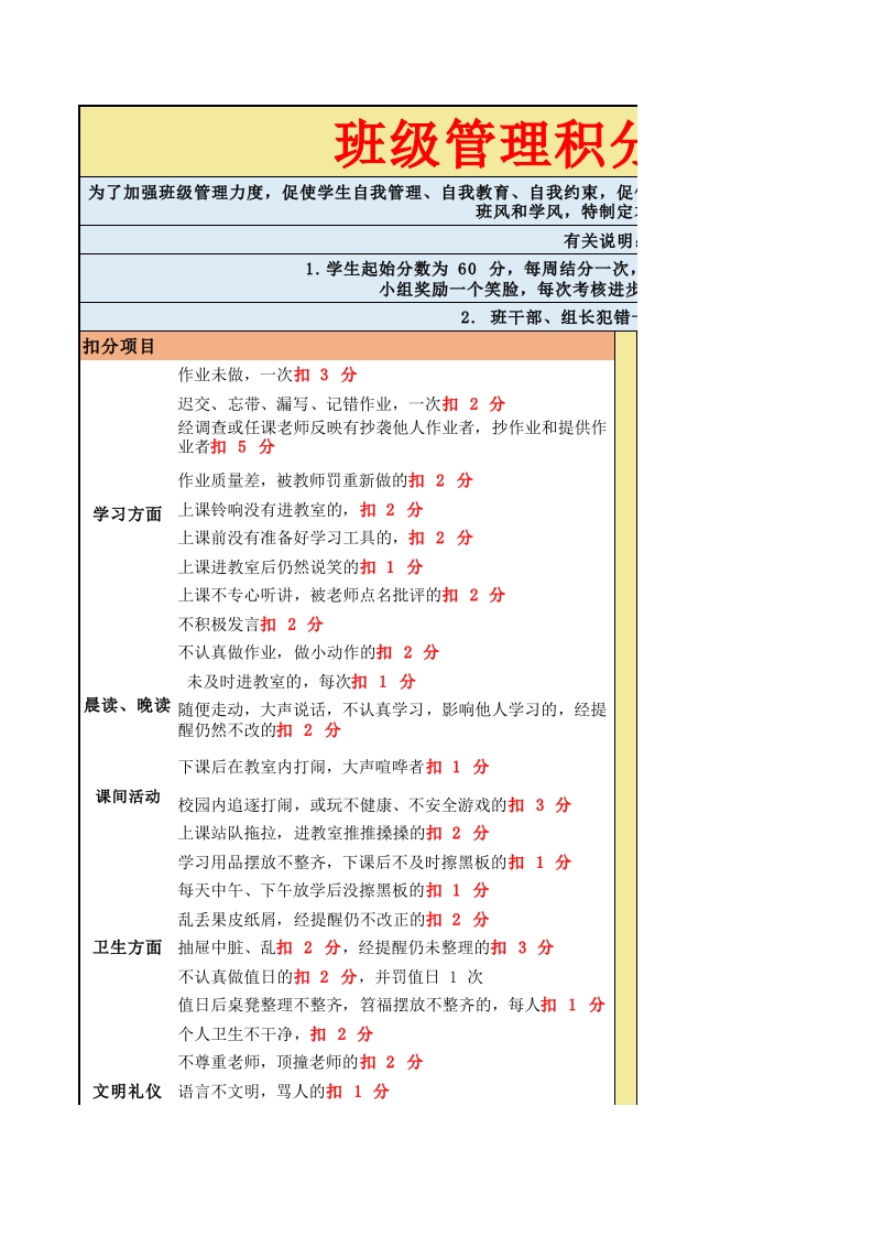 首页班主任库常用表格2026年春季 班级积分管理考核细则