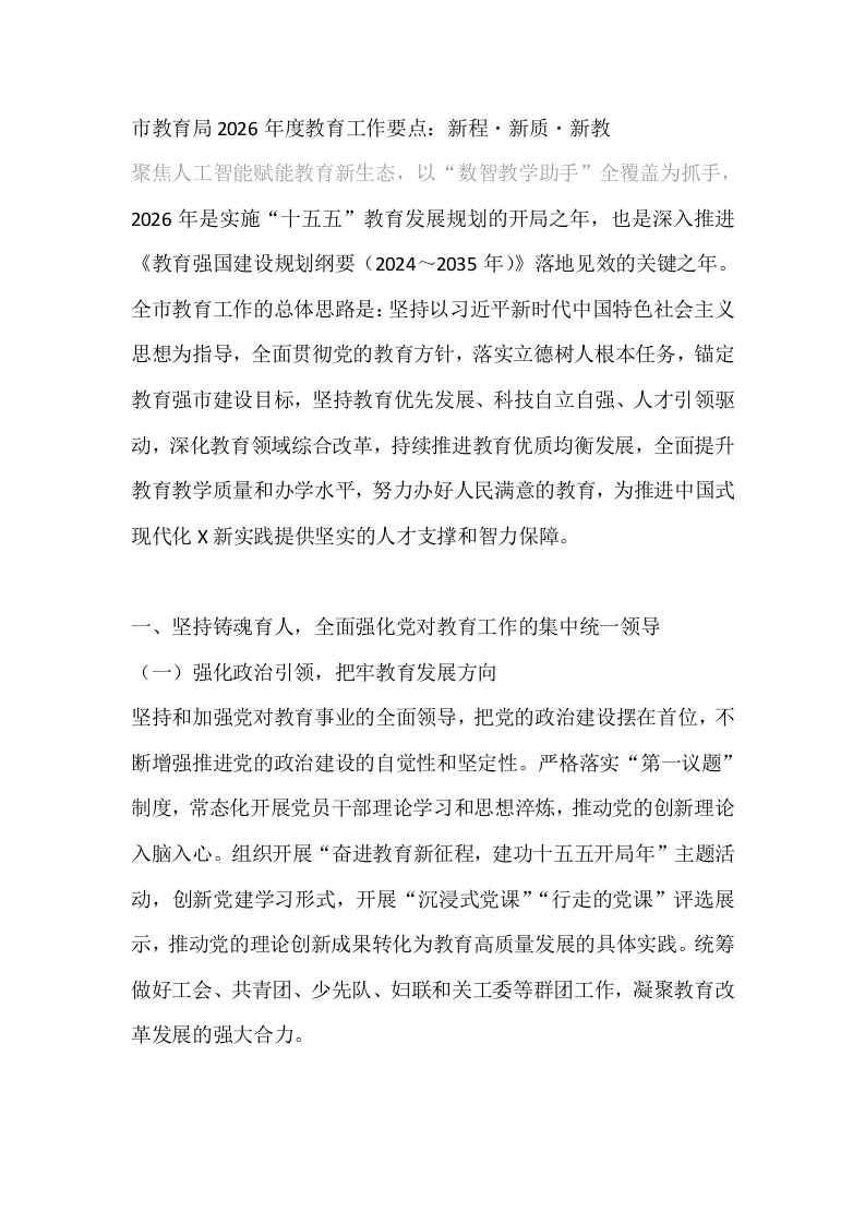 首页学校教务计划总结市教育局2026年度教育工作要点:新程・新质・新教