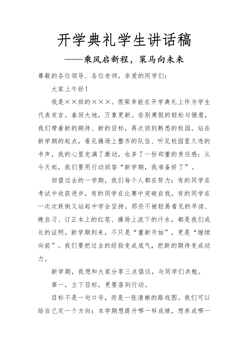 2026春季开学典礼学生讲话稿——乘风启新程,策马向未来