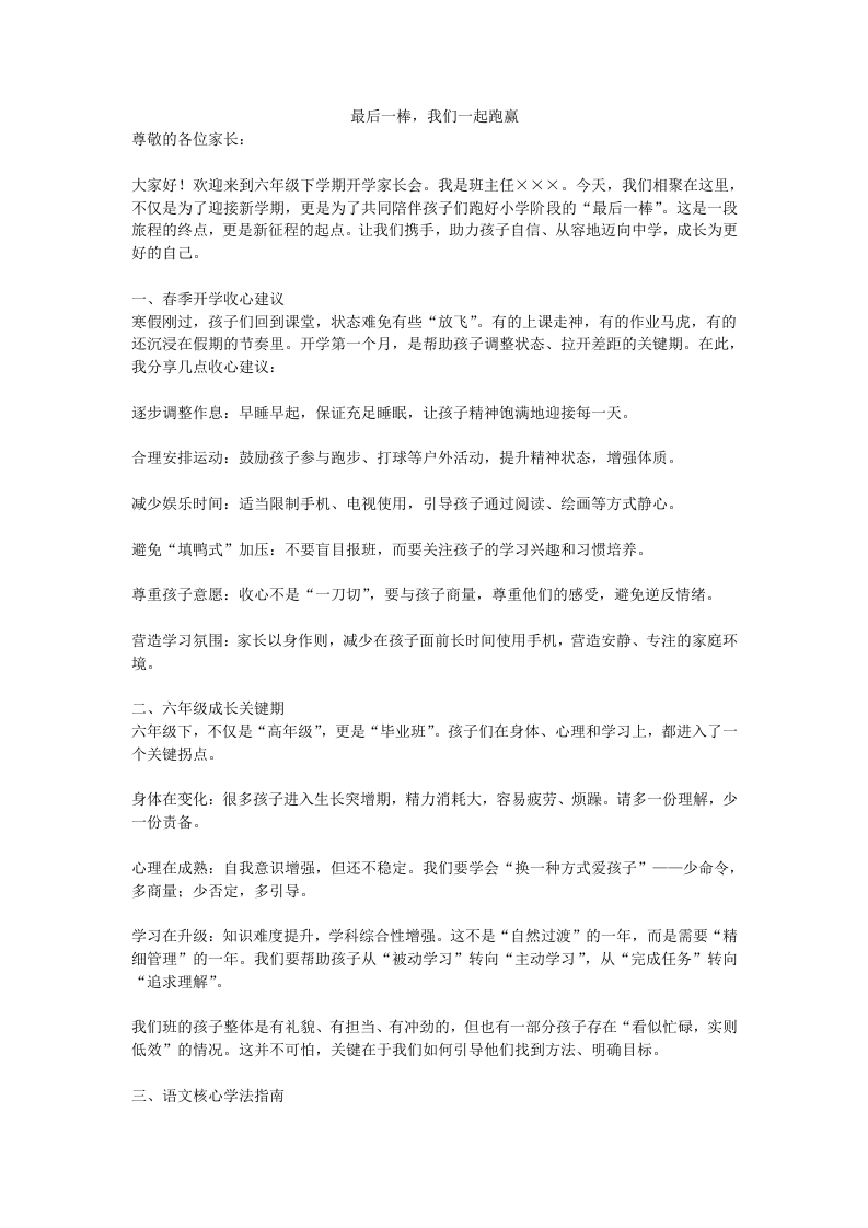 【六年级】【春季下】开学家长会:最后一棒,我们一起跑赢