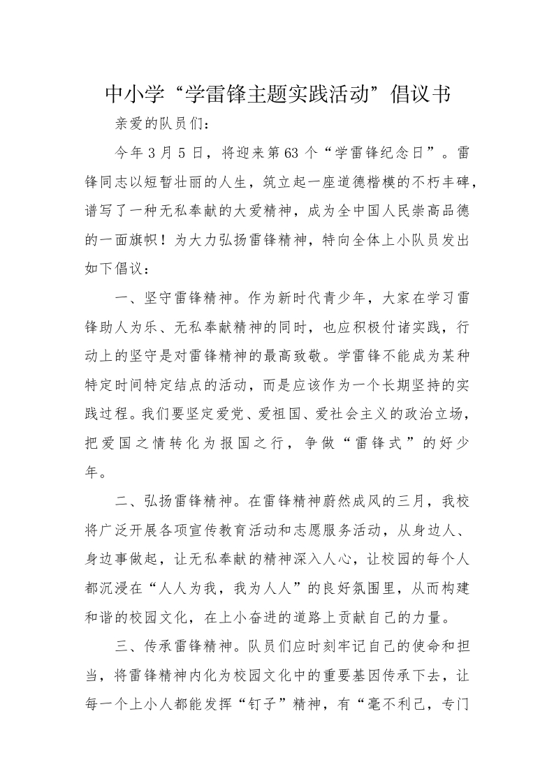 首页热门资源学校活动2026中小学“学雷锋主题实践活动”倡议书