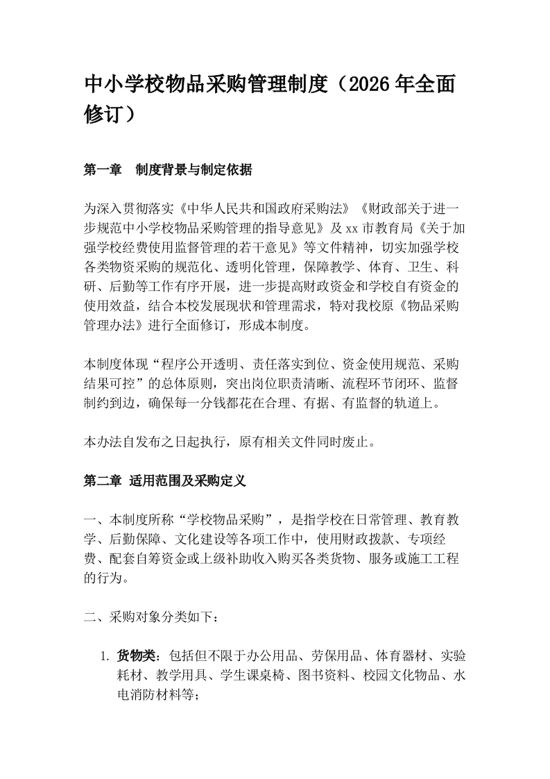 中小学校物品采购管理制度(2026年全面修订)