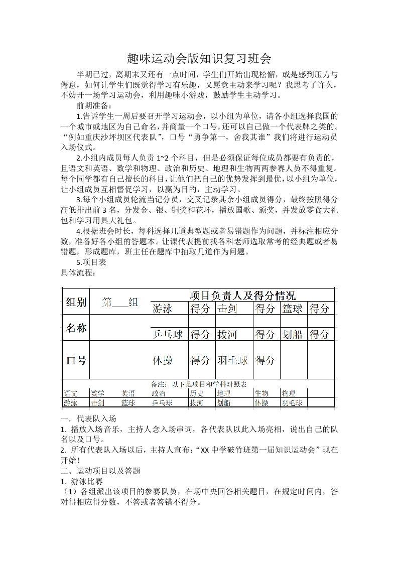 趣味运动会版知识复习班会