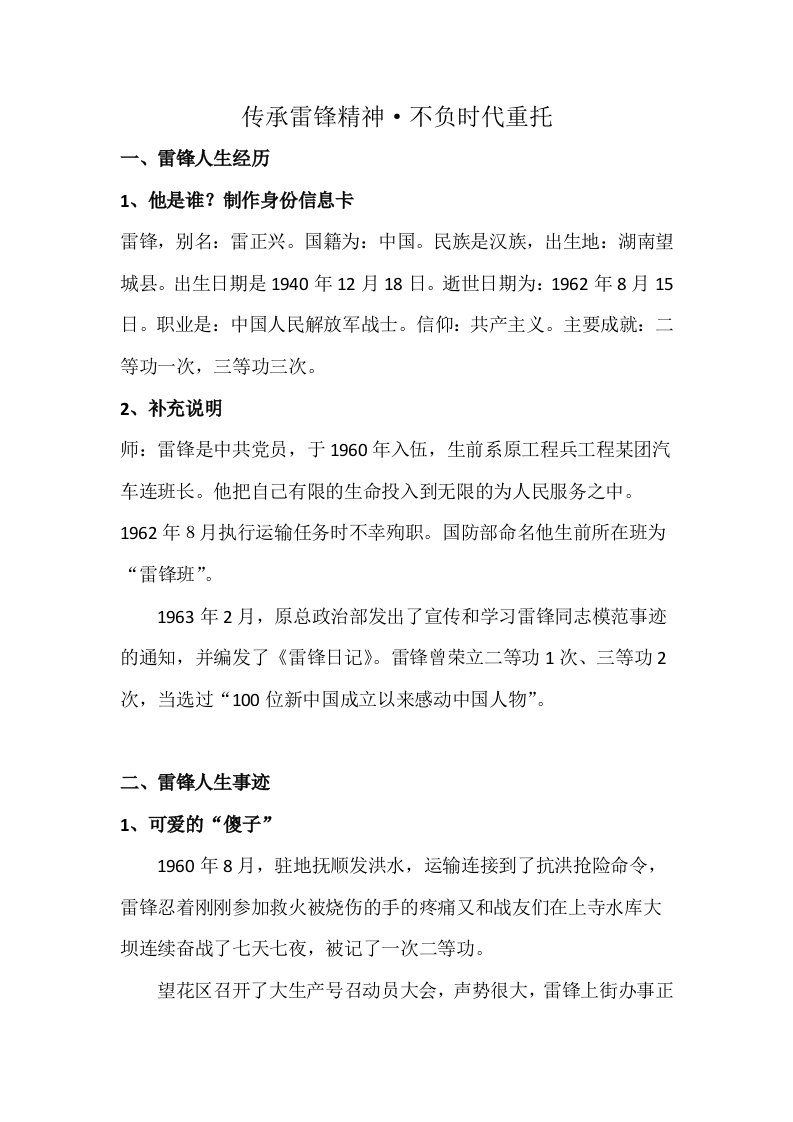 【通用】学习雷锋主题班会:传承雷锋精神,不负时代重托