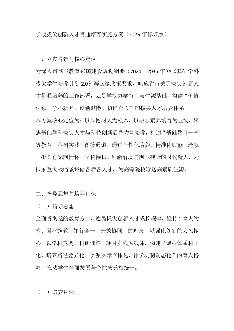 学校拔尖创新人才贯通培养实施方案(2026年修订版)