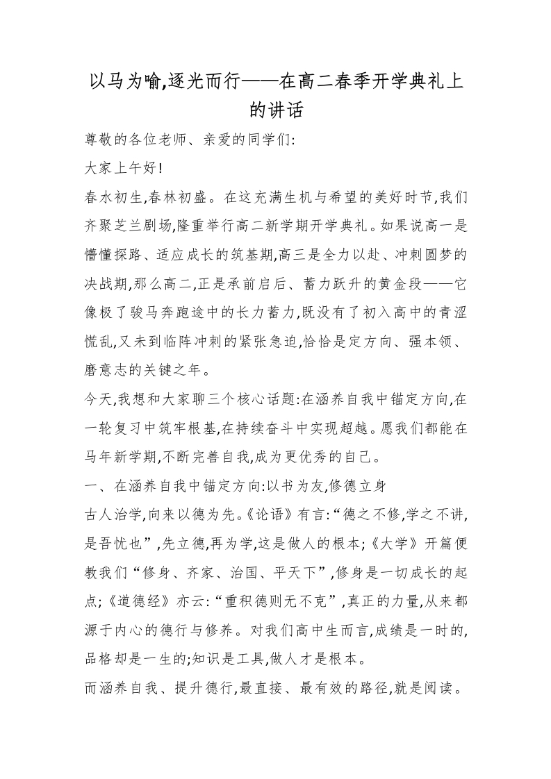 以马为喻,逐光而行——在高二春季开学典礼上的讲话