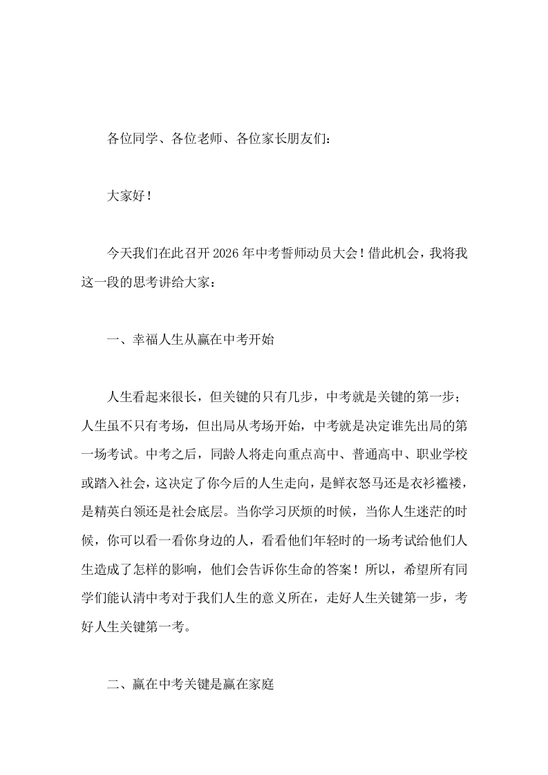2026中考誓师动员会上,校长讲话幸福人生,赢在中考