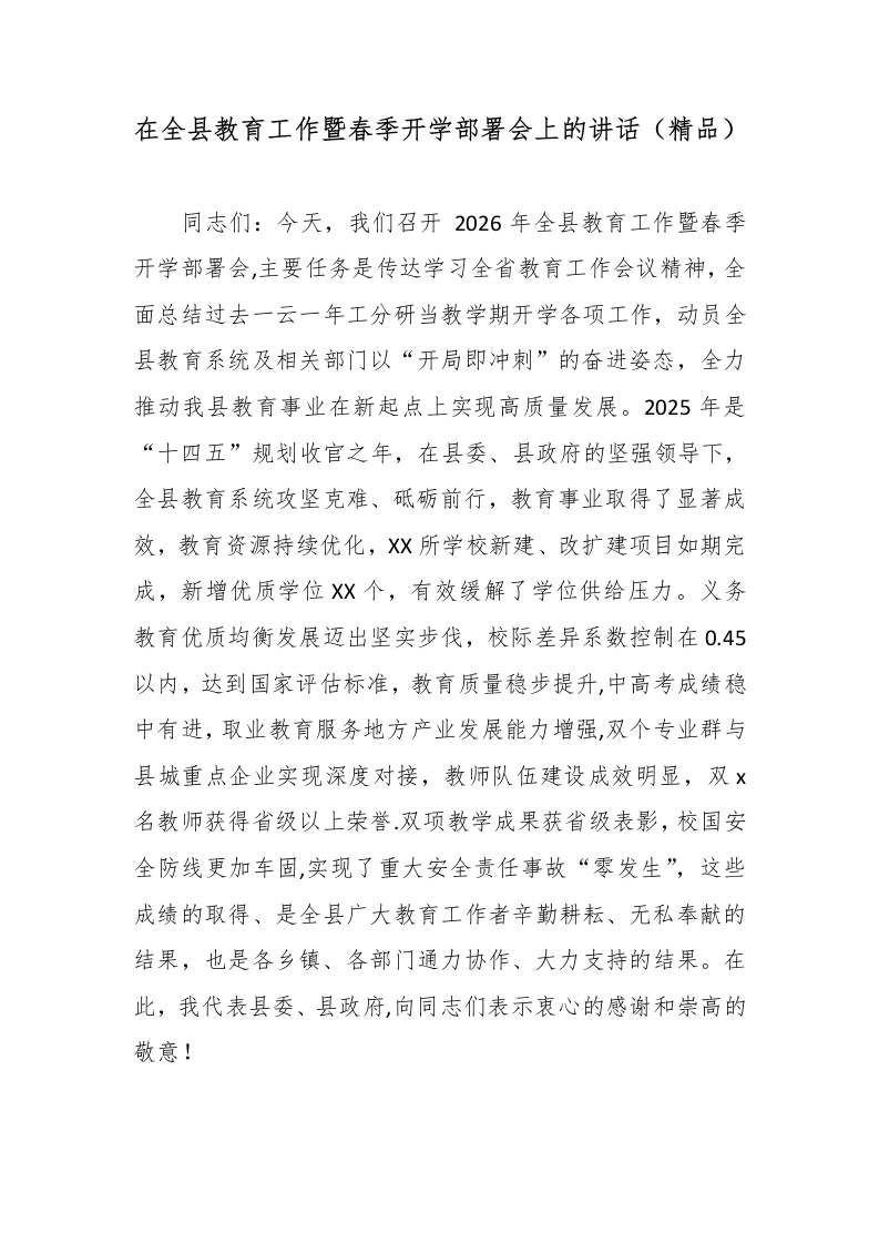 在全县教育工作暨春季开学部署会上的讲话(精品)