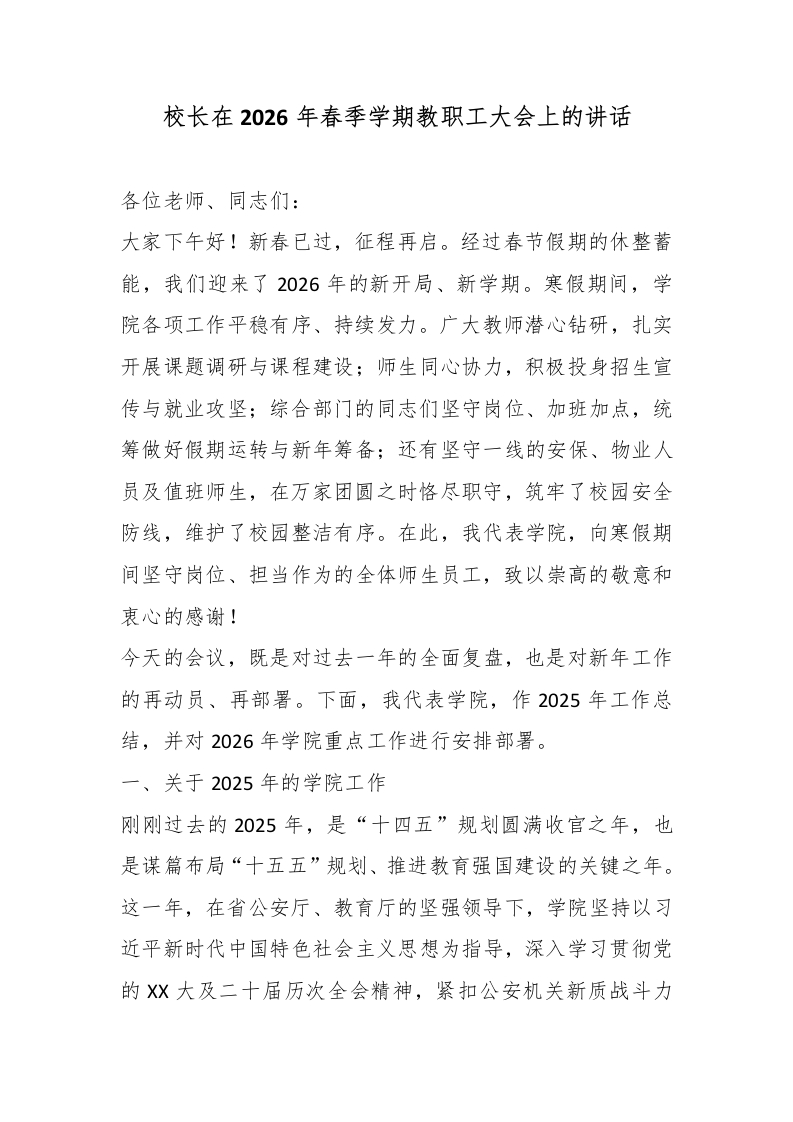 校长在2026年春季学期教职工大会上的讲话