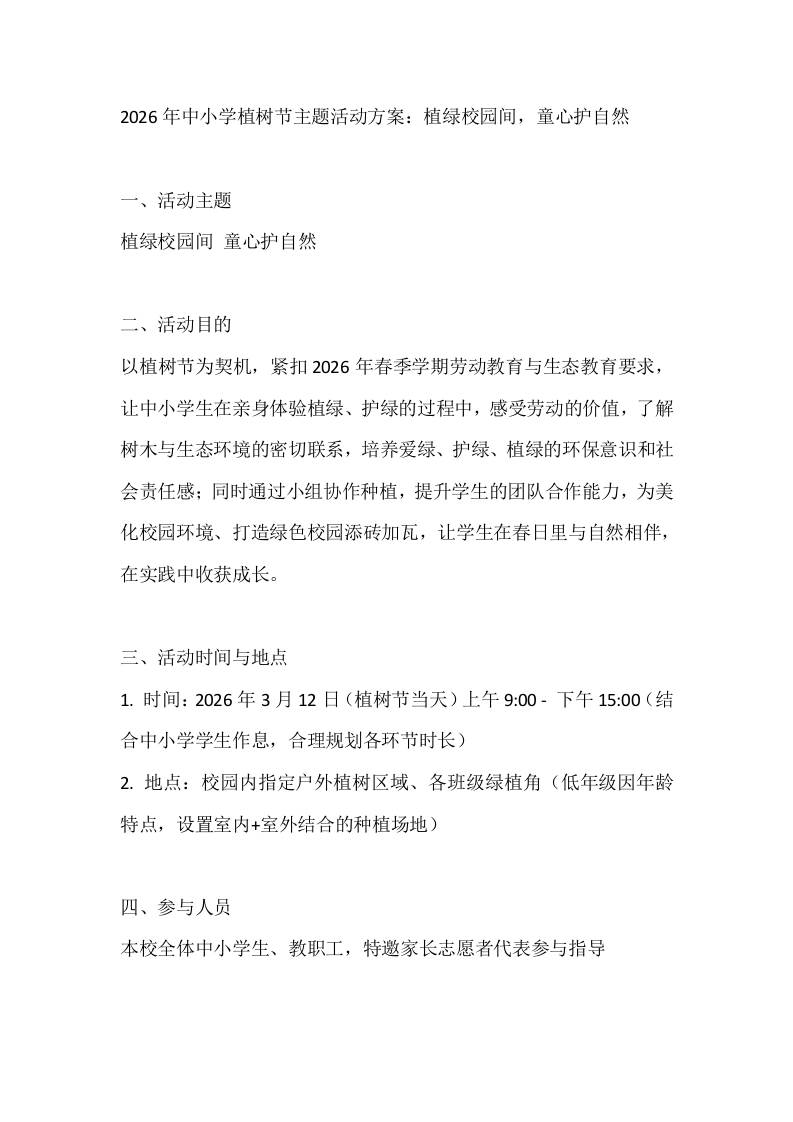 2026年中小学植树节主题活动方案:植绿校园间,童心护自然