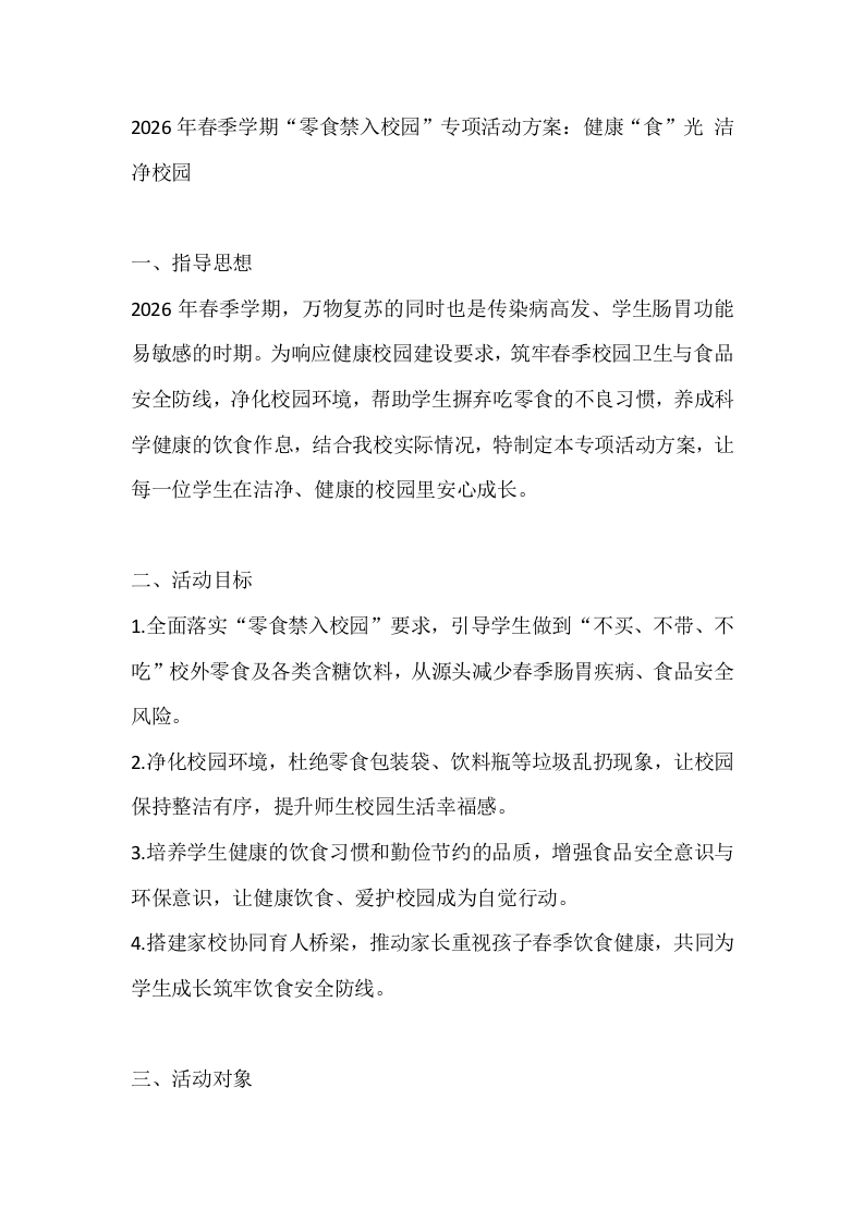 2026年春季学期“零食禁入校园”专项活动方案:健康“食”光 洁净校园