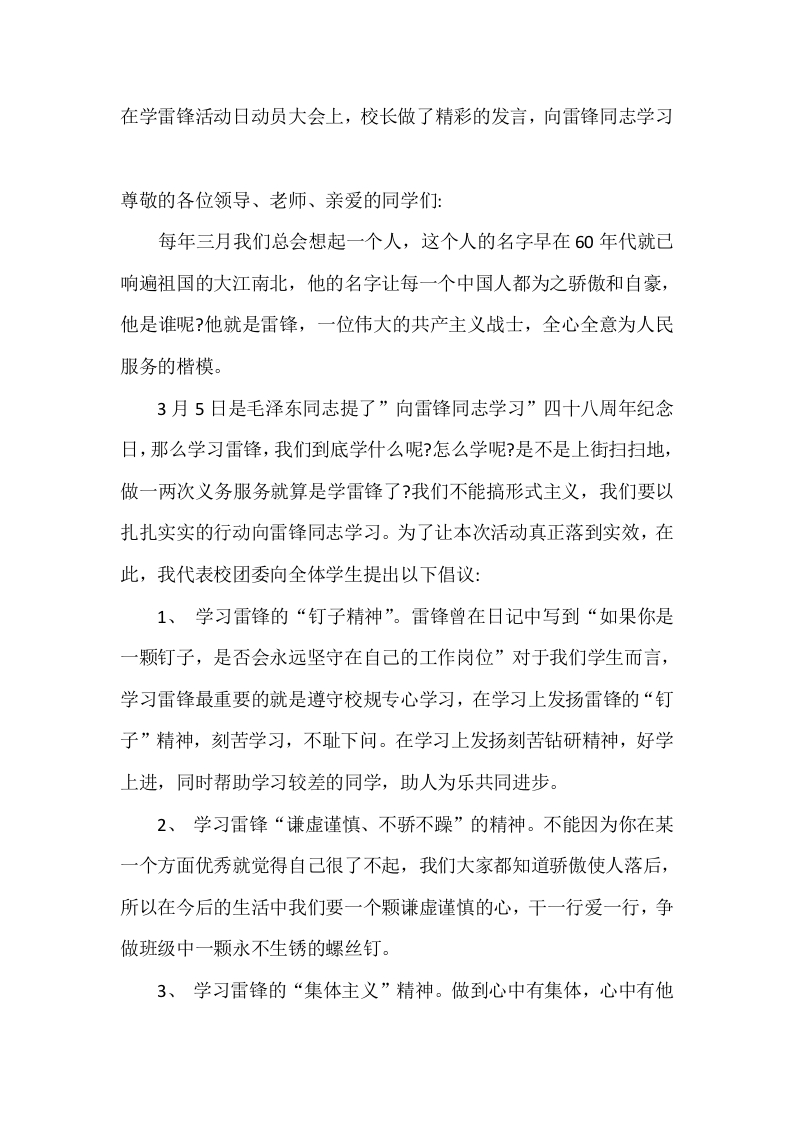在学雷锋活动日动员大会上,校长做了精彩的发言,向雷锋同志学习