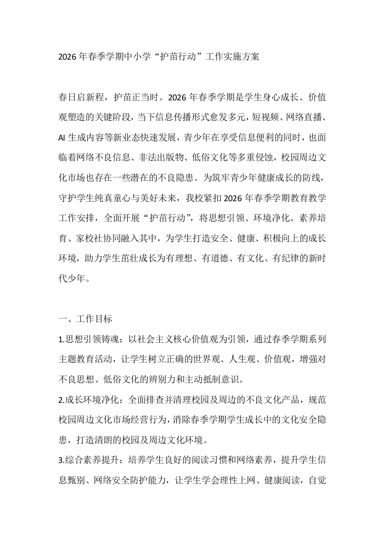 首页教师资料 实施方案2026年春季学期中小学“护苗行动”工作实施方案