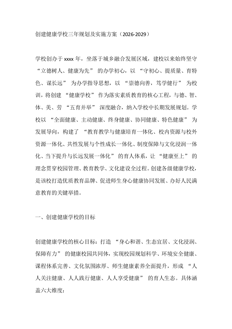 首页教师资料 实施方案创建健康学校三年规划及实施方案(2026-2029)