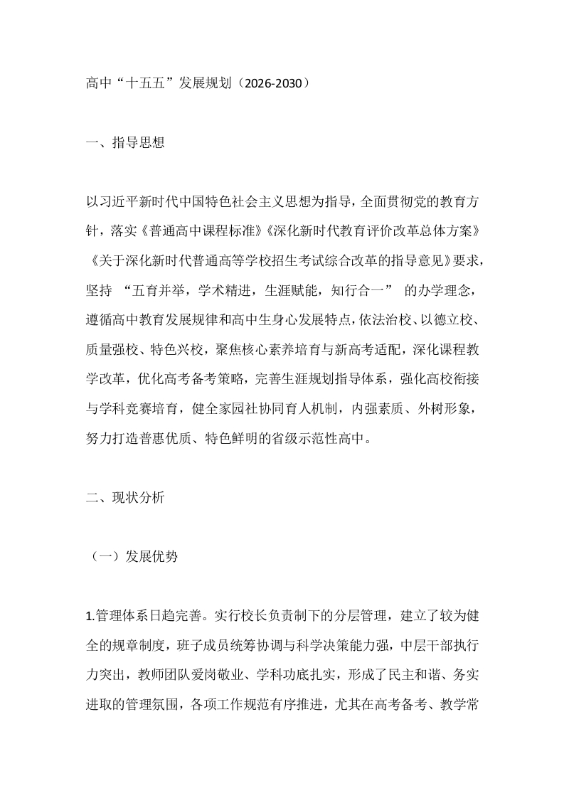 高中“十五五”发展规划(2026-2030)