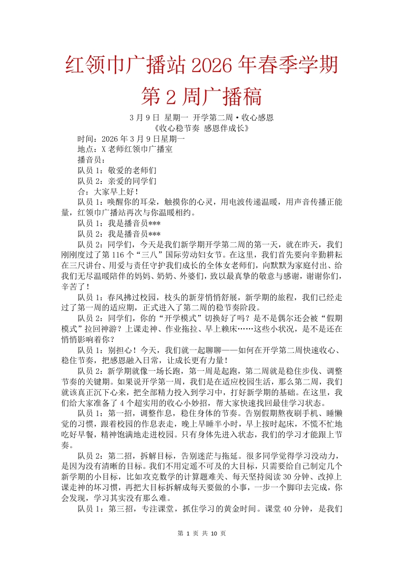 首页综合资料 校园广播红领巾广播站2026年春季学期第2周广播稿