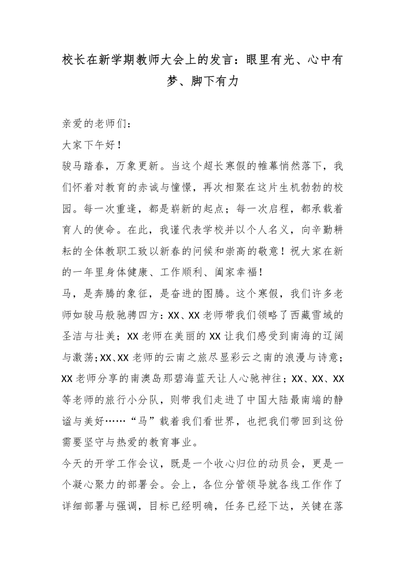 校长在新学期教师大会上的发言:眼里有光、心中有梦、脚下有力