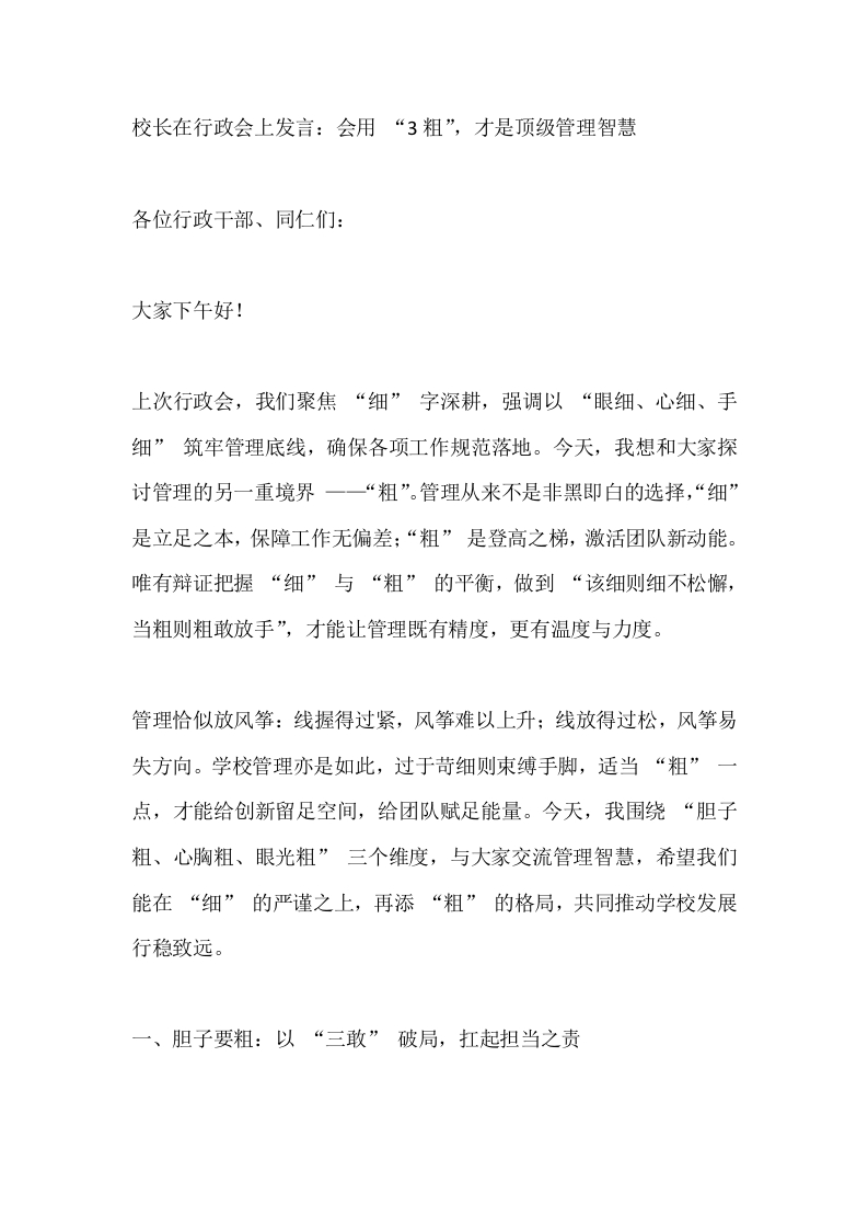首页校长资料活动讲话校长在行政会上发言:会用 “3粗”,才是顶级管理智慧