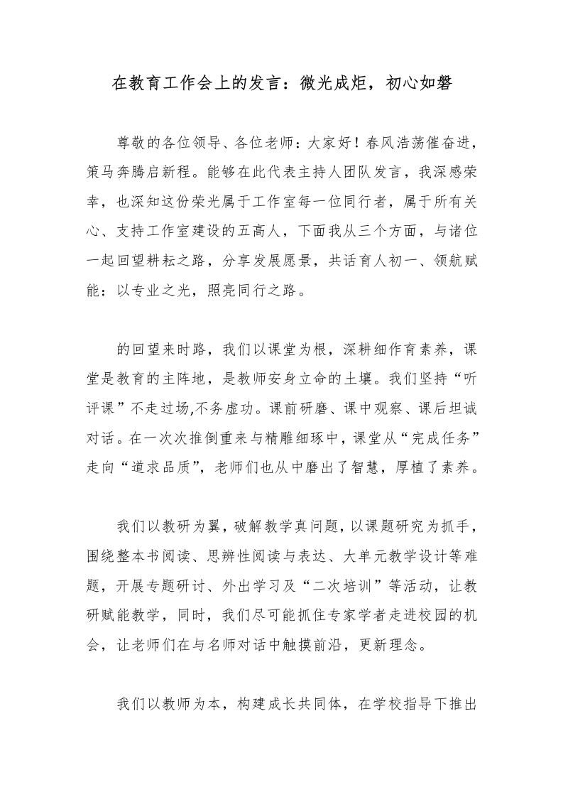 在教育工作会上的发言:微光成炬,初心如磐