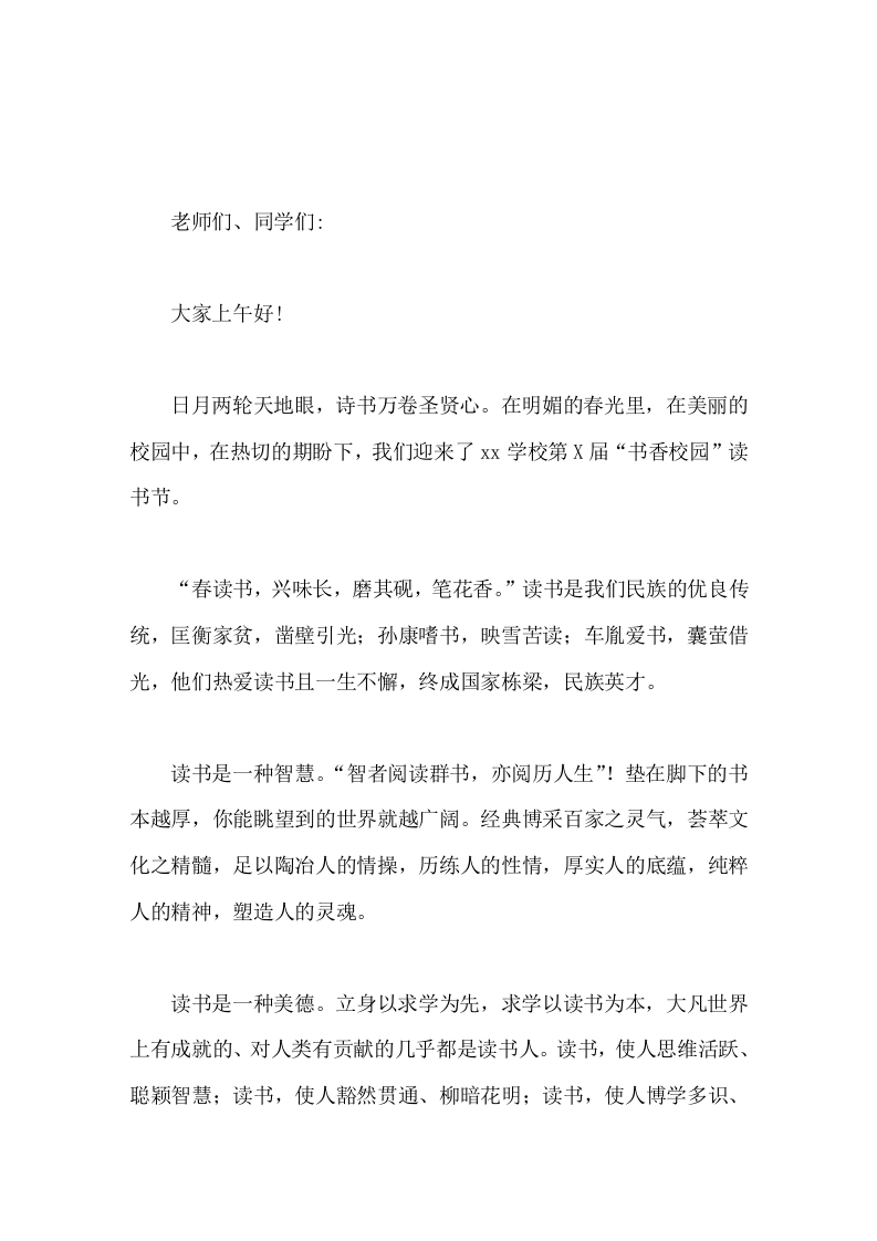 2026年中小学校园读书节,校长致辞