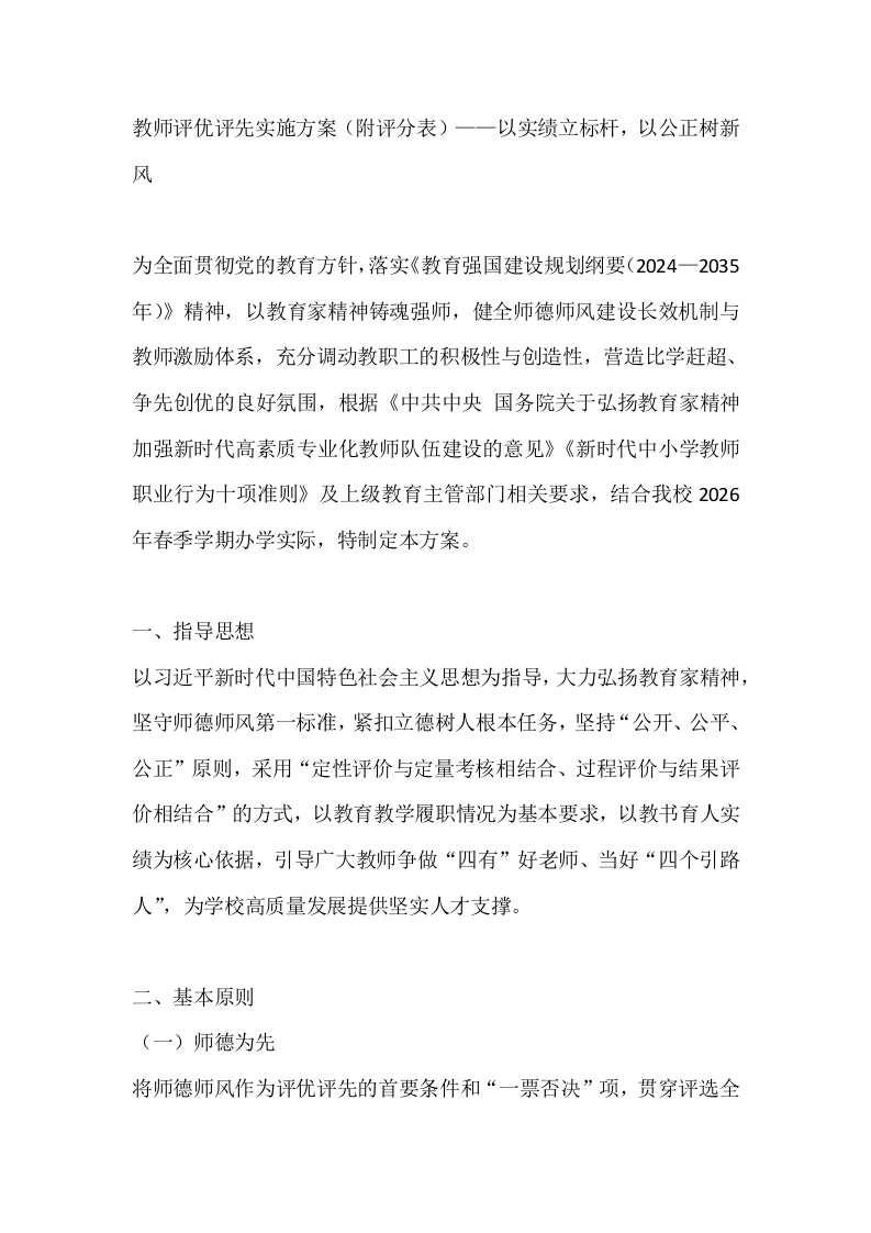 教师评优评先实施方案(附评分表)——以实绩立标杆,以公正树新风