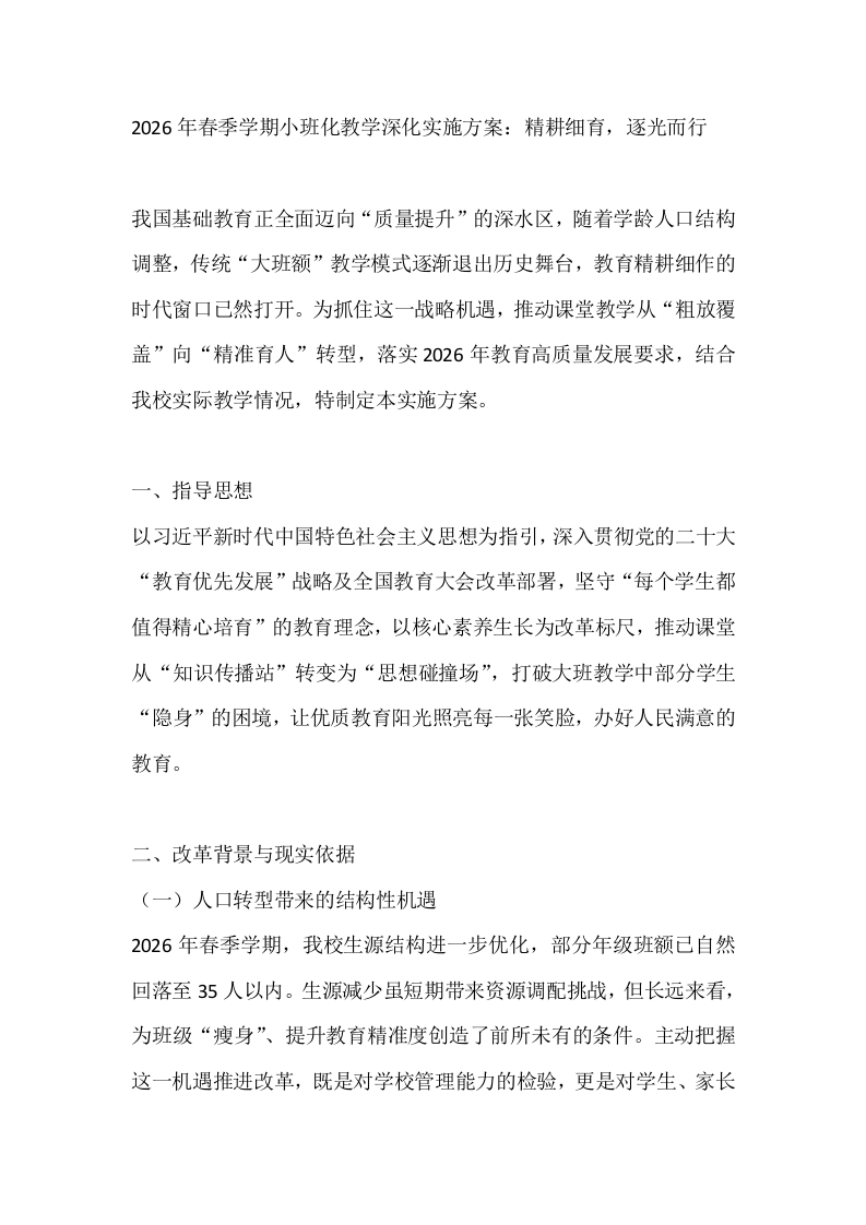 2026年春季学期小班化教学深化实施方案:精耕细育,逐光而行
