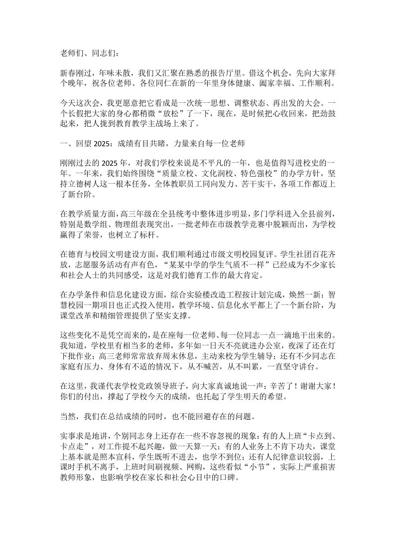 春季开学教师收心会上,校长讲话:红线底线绝不碰触,师德师风零容忍从严管理抓实到位!