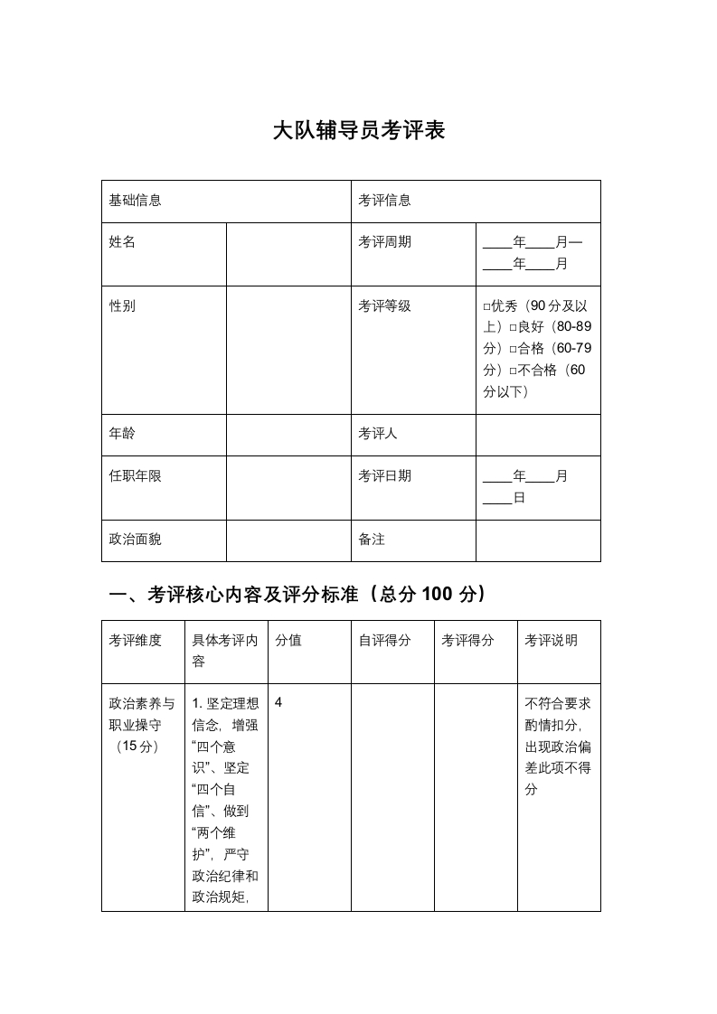 大队辅导员考评表