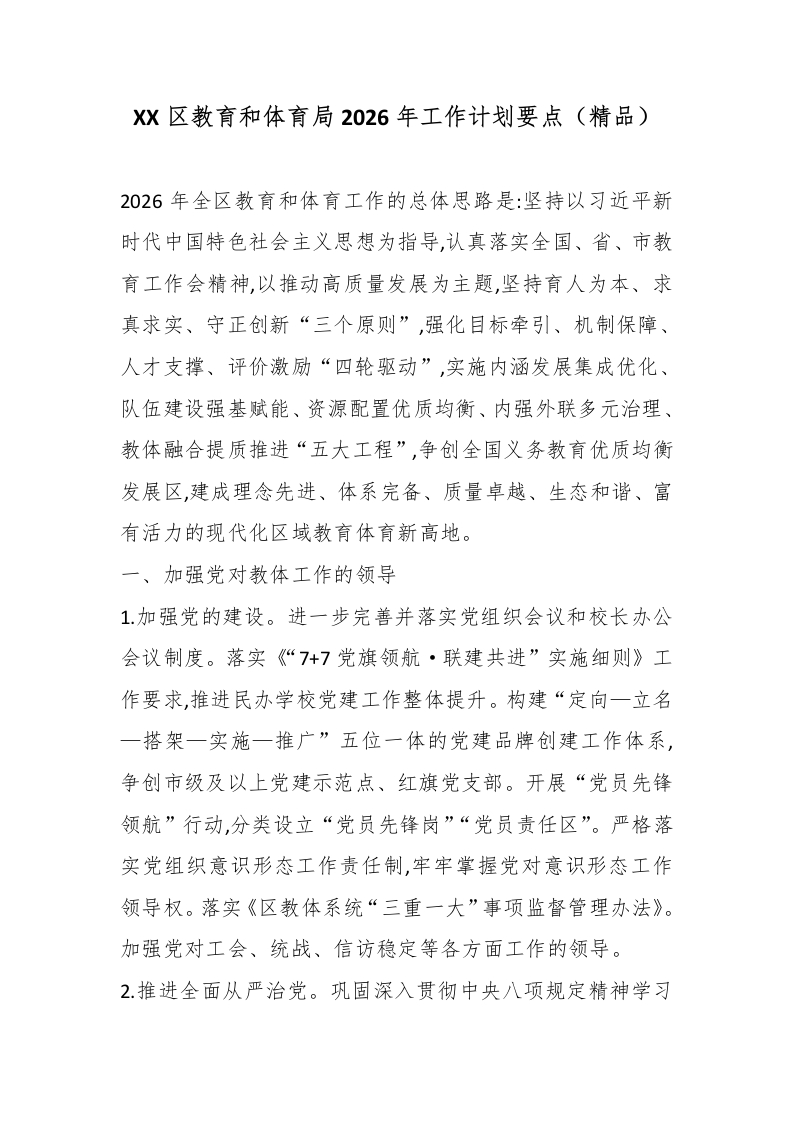 首页校长资料工作讲话XX区教育和体育局2026年工作计划要点(精品)