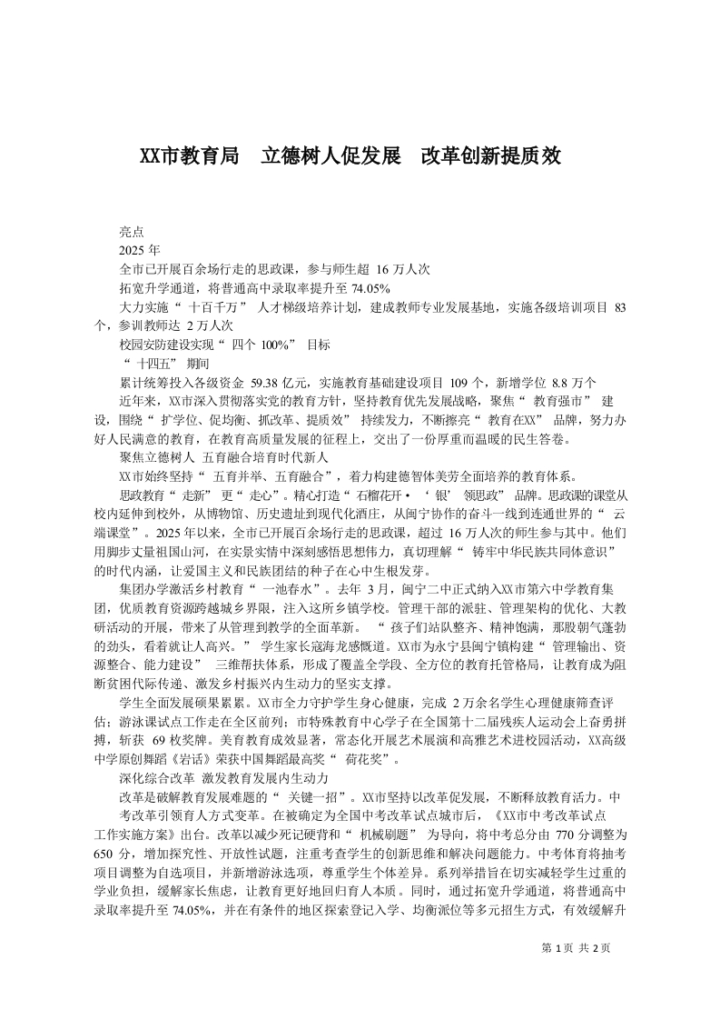 首页学校教务职责制度XX市教育局__立德树人促发展__改革创新提质效