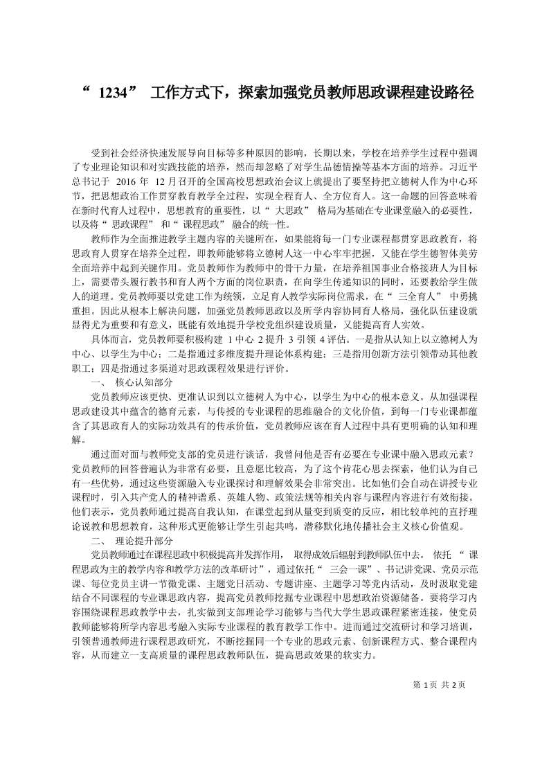 “1234”工作方式下,探索加强党员教师思政课程建设路径
