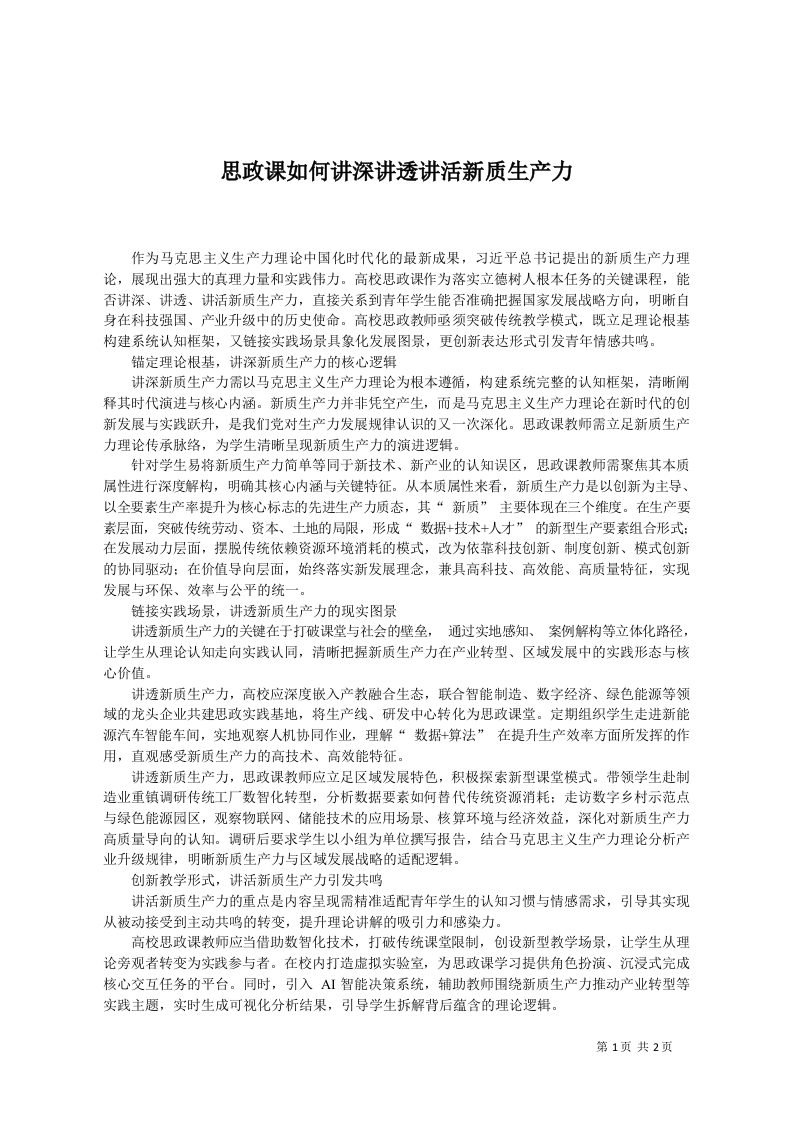 首页学校教务职责制度思政课如何讲深讲透讲活新质生产力