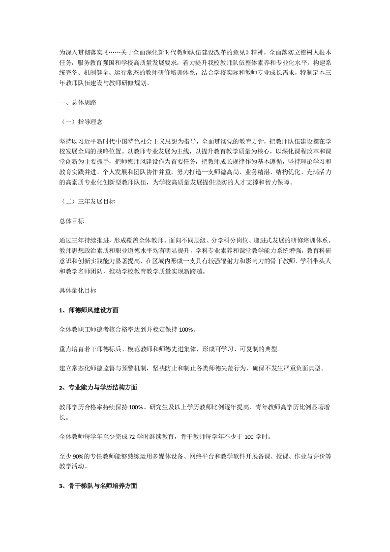 学校教师研修培训专业发展计划 (2026-2028年)