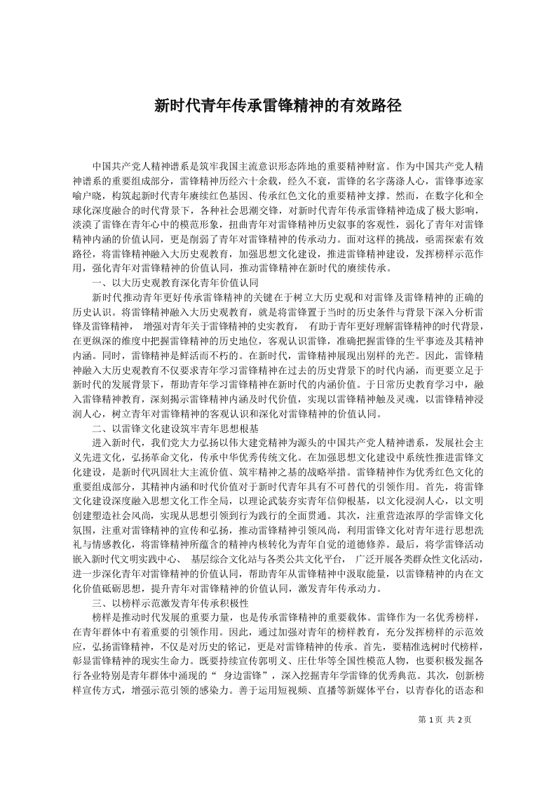 首页学校教务计划总结新时代青年传承雷锋精神的有效路径