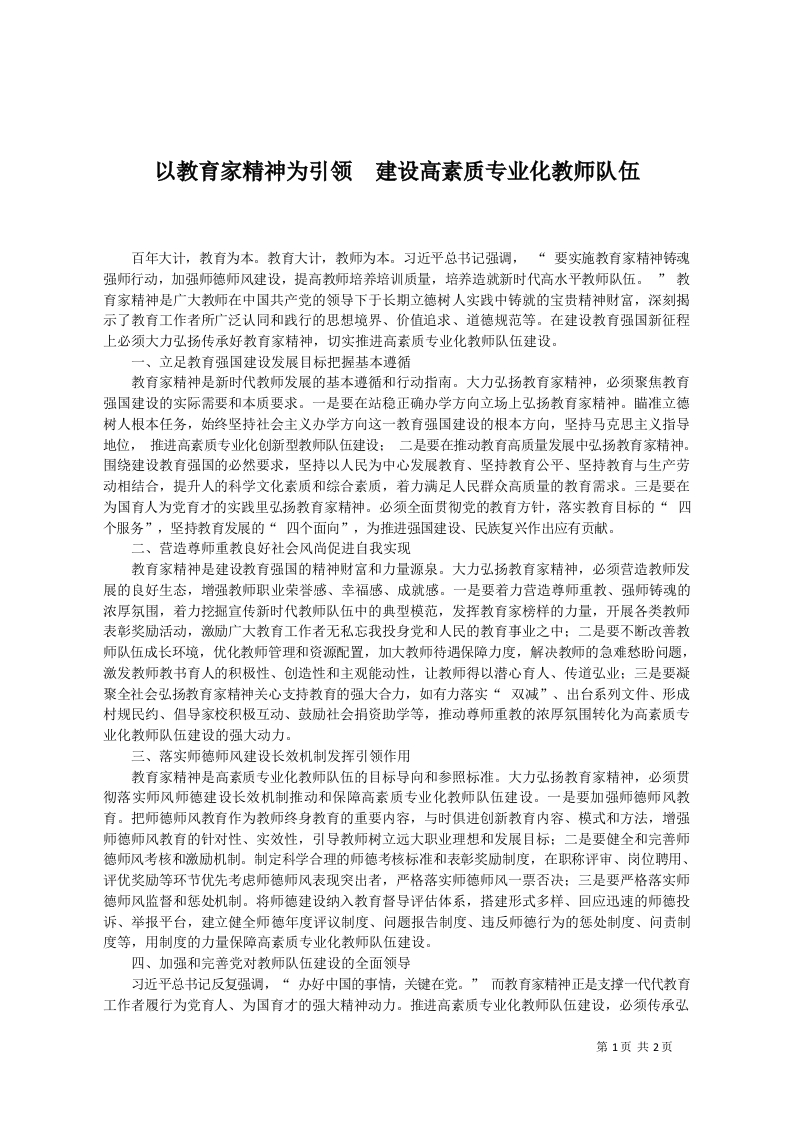 以教育家精神为引领__建设高素质专业化教师队伍
