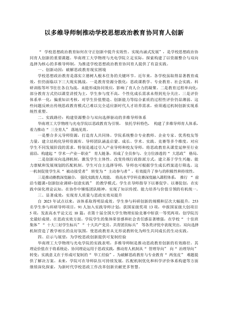 首页学校教务计划总结以多维导师制推动学校思想政治教育协同育人创新