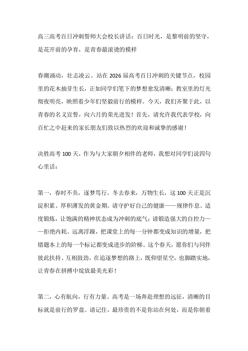高三高考百日冲刺誓师大会校长讲话:百日时光,是黎明前的坚守,是花开前的孕育,是青春最滚烫的模样