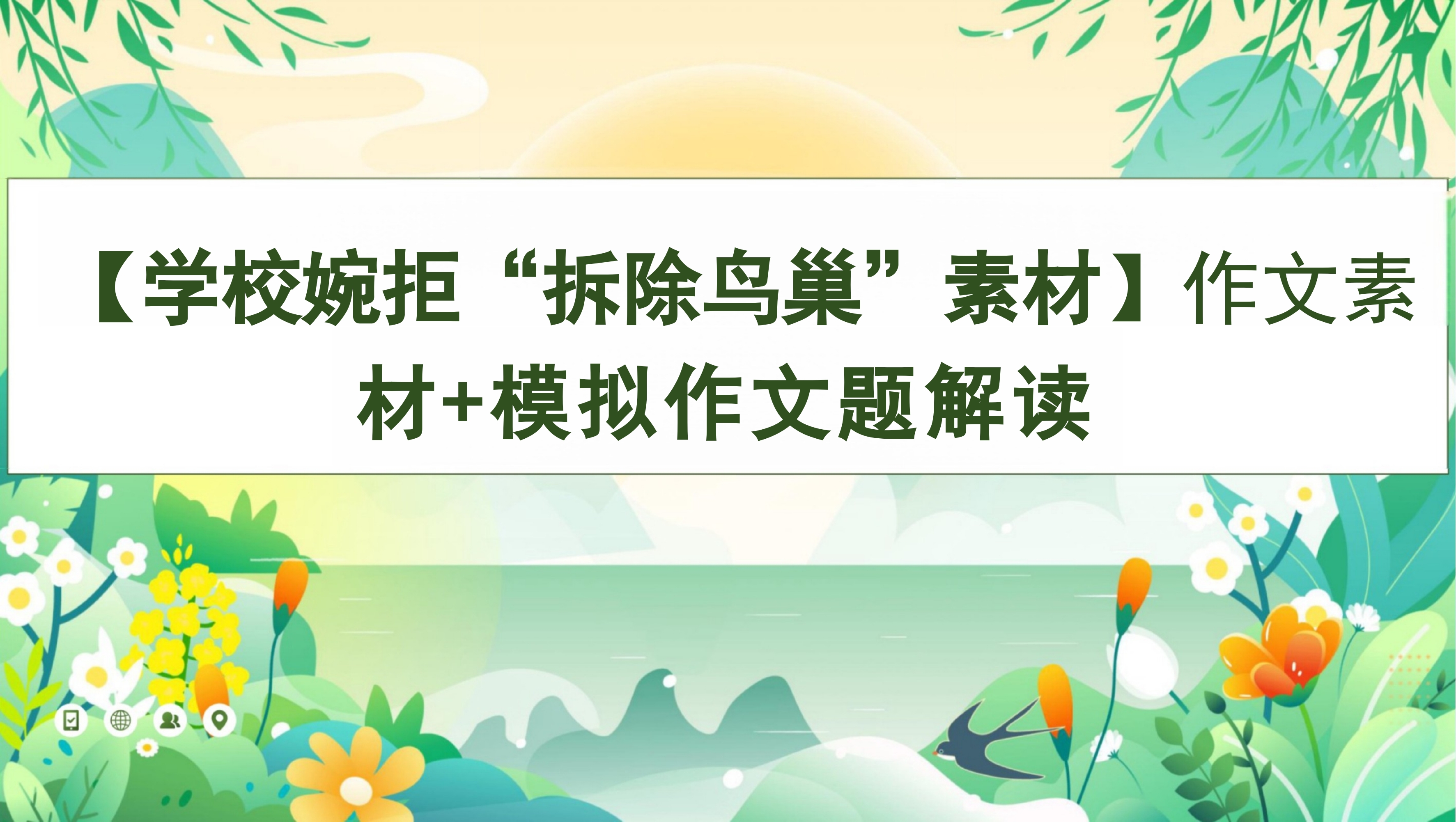 首页班务PPT综合PPT【高三】【作文】【学校婉拒“拆除鸟巢”素材】作文素材 模拟作文题解读