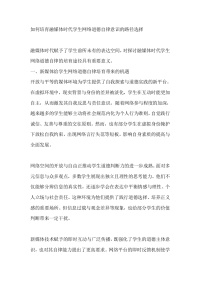 如何培育融媒体时代学生网络道德自律意识的路径选择