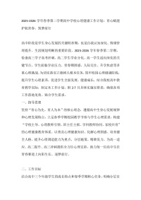 2025-2026学年春季第二学期高中学校心理健康工作计划:育心赋能 护航青春,筑梦前行