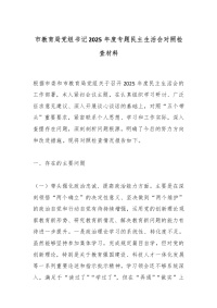 市教育局党组书记2025年度专题民主生活会对照检查材料