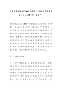 市教育局党组书记2025年度民主生活会对照检查发言材料(对照“五个带头”)